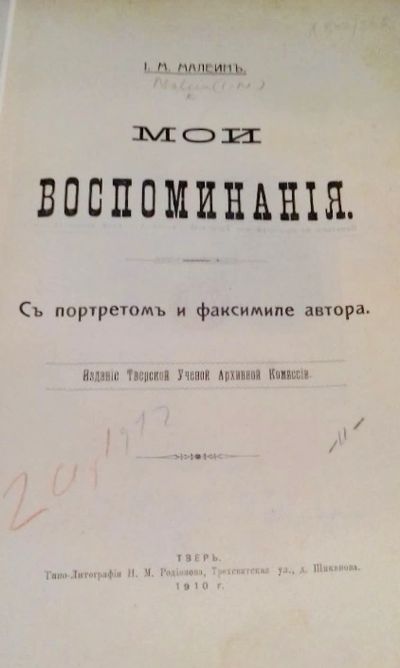 интересны, что сыновья (Александр, Виктор, Михаил, Николай) попросили записать их в виде рассказов. Так появилась рукопись «Мои воспоминания», которая была зачитана на заседании Тверской губернской архивной комиссии, члены которой высоко оценили этот труд и способствовали изданию книги. «Мои воспоминания» Иустина Малеина, были изданы в Твери в 1910 году в типолитографии Н.М. Родионова небольшим тиражом.